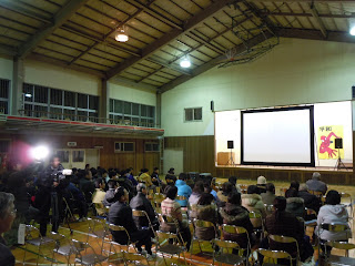 本日、夕方5時半から本校体育館で、現代ぷろだくしょん製作の映画「大地の詩」の試写会が行われました。暖房が入っているとは言え、夜の体育館はかなり冷え込んでおり、コートを着用しながらの鑑賞でした。