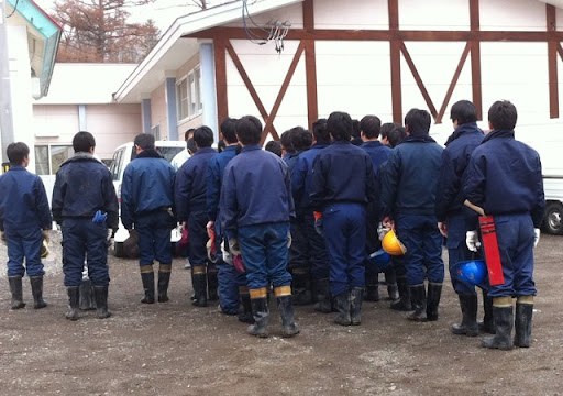 写真は、作業前の整列です。新年度から作業主任となった楠が点呼後、作業学習の意義と心得を述べ、各班の作業を開始しました。